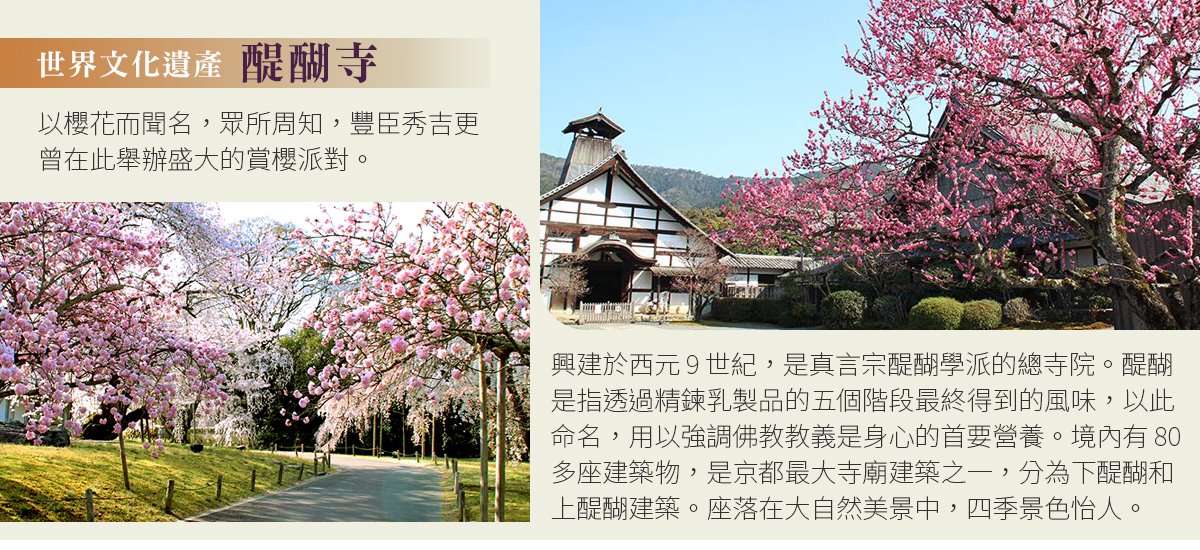 【天橋立】位於京都府的北部,在面臨日本海的宮津灣內。天橋立──一個全長約3公里、寬40~100米的沙堤,從宮津灣西岸的丹後半島的江尻伸向宮津灣。因潮汐堆積起來的沙所形成的沙堤上生長著約8000棵松樹,天橋立成了白沙綠松相映的極美之地,和廣島縣的宮島、宮城縣的松島並列爲“日本三景”。俯首從兩足之間看的話,天橋立象在天上架起的橋。 鄰接宮津側的橋的部分的是人工建成的迴旋橋,船經過此處時要回轉。坐纜車上山頂看天橋立,和坐觀光遊船從海上看時由於角度不同,領略的景色也各有千秋。