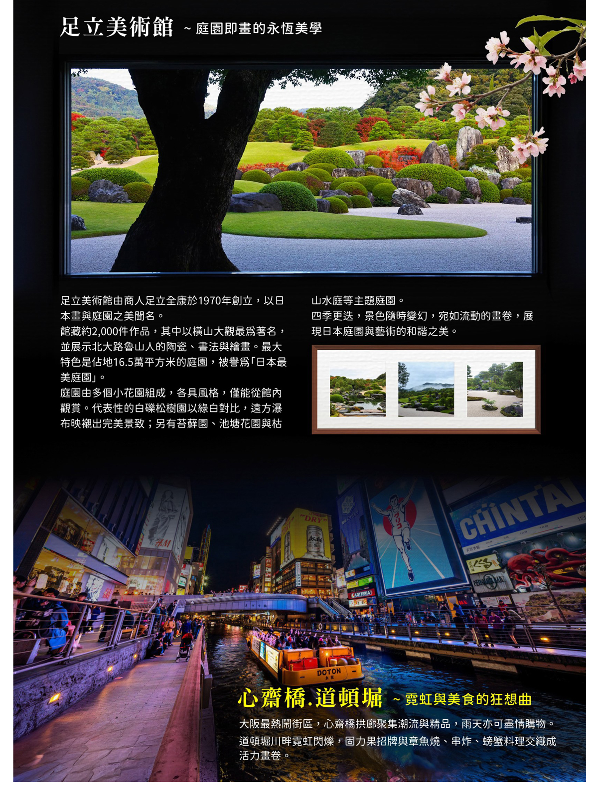 【帝釋峽遊覧船】是西日本著名的溪谷美景地之一。這裡以峽谷間的奇岩怪石、清澈溪流與壯麗紅葉而聞名,被譽為中國地區的秘境。每到秋天,山林漸染紅黃,倒映在水面如詩如畫,吸引無數遊客慕名而來。搭乘帝釋峽遊覽船是欣賞這片自然美景最詩意的方式。平底小船緩緩滑行於清流之上,沿途可見峭壁陡立、古木參天,還有著名的天然石橋「雄橋」,彷彿一座巨龍橫臥於峽谷之中。船夫會以輕鬆的語調講解沿岸地形與歷史,讓旅人一邊沉浸於靜謐山水間,一邊感受人與自然的對話。