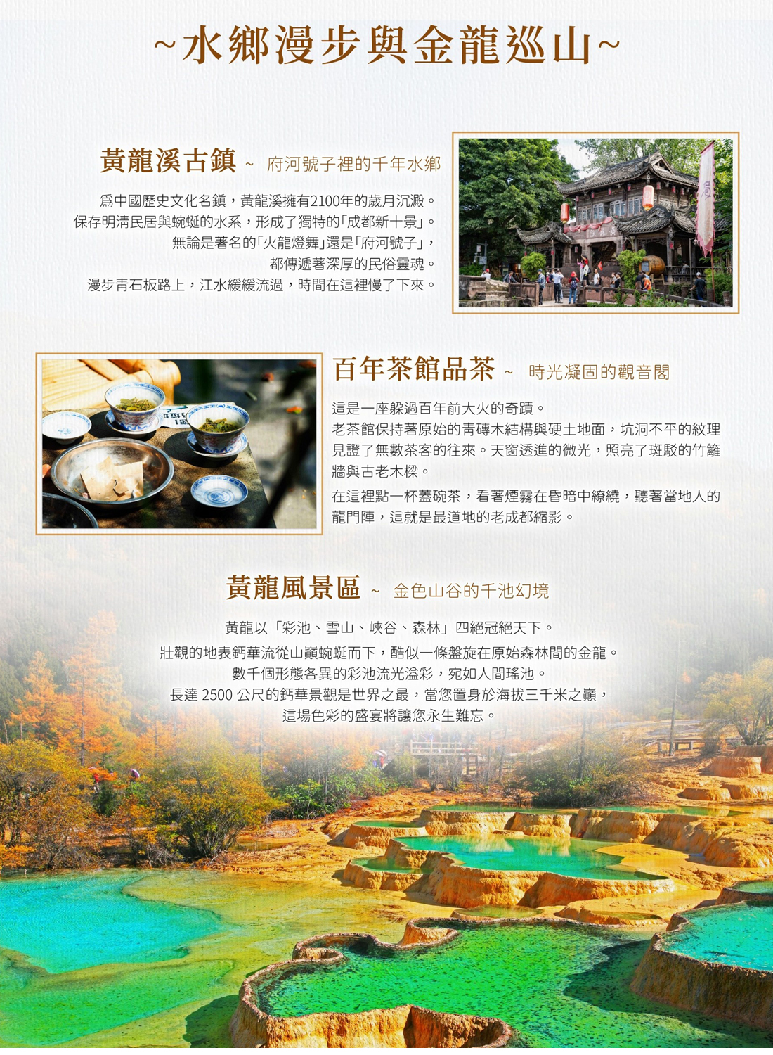 ※九寨溝景區具體遊覽區域請聽從景區隨車講解員安排。